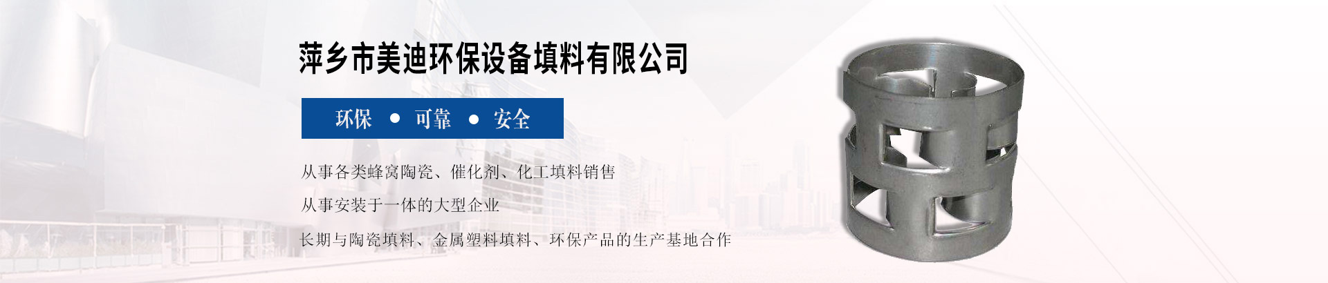 萍鄉市美迪環保設備填料有限公司前身為建于70年代的原萍鄉市化工填料公司。公司位于“中國工業陶瓷之都”――江西省萍鄉市湘東區下埠工業園,緊鄰滬昆高鐵、浙贛鐵路、滬瑞高速和國道319、320線,臨距黃花國...